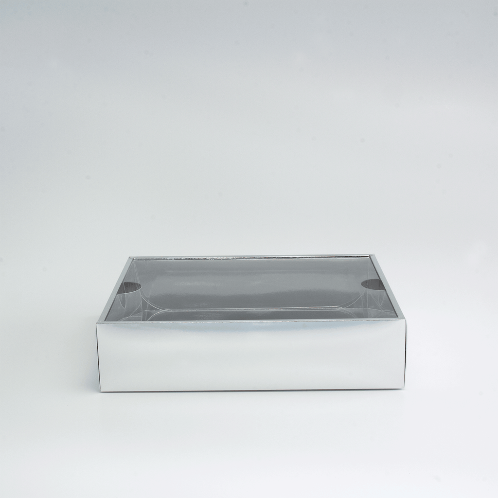 Boîte rectangulaire noire à l'extérieur, argent à l'intérieur avec couvercle