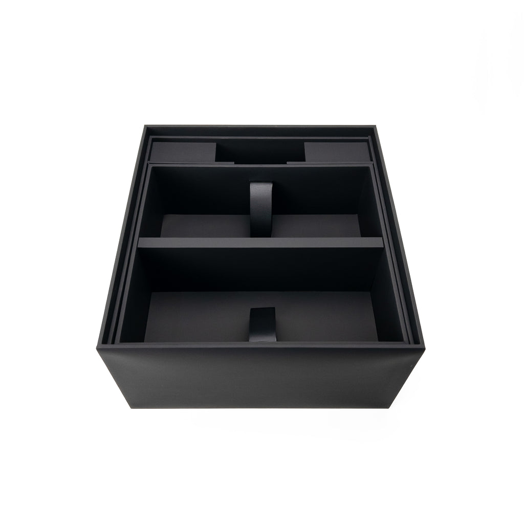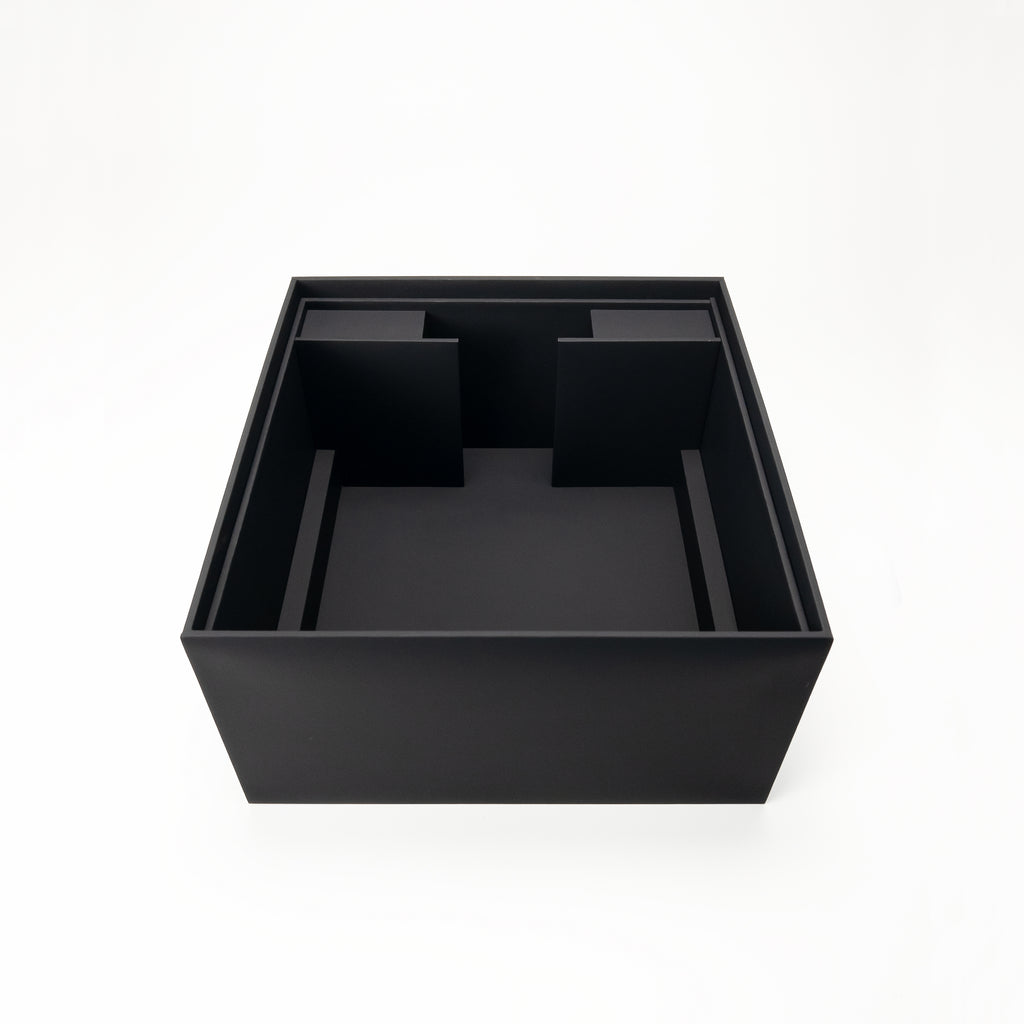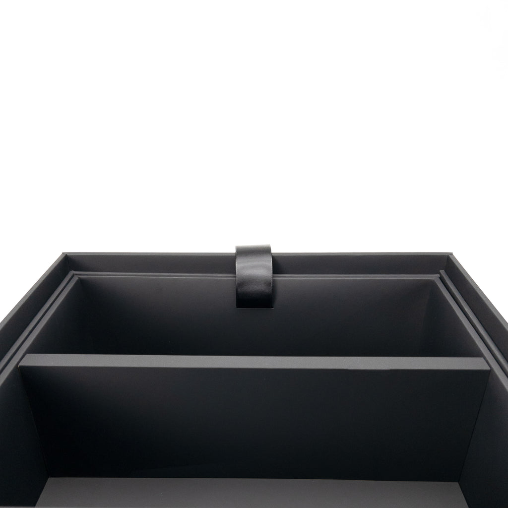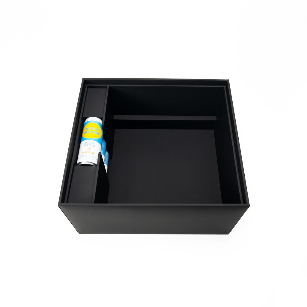 Designed for beverage focused gifting sets, cocktail kits, or can pairings with complementary accessories, this multi-layered box offers practical organization and a premium presentation.